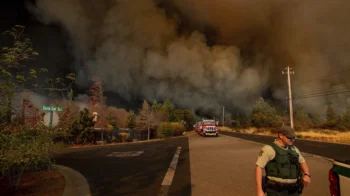 Dark smoke fills the sky as the Camp Fire rages...